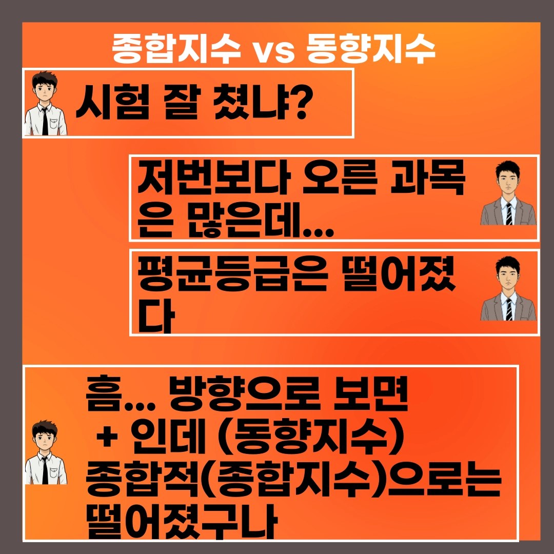 아래의 카드뉴스에 있는 상황을 보시면, 경기종합지수와 경기동향지수의 차이가 빠르게 이해가 되실 겁니다.