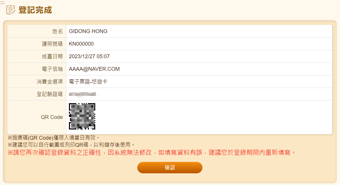 ○ 대만 공항 도착 시 QR 인식으로 확인